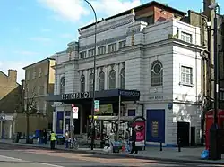 Palace Theatre, Wandsworth (1920): The Palace Theatre, later the Gaumont Theatre, Wandsworth, opened in December 1920 with 1,307 seats. It was Greek Revival in style. For its fourth anniversary, a 2-manual Compton organ was installed. Originally independent, it became part of the United Picture Theatres circuit in 1928 and Gaumont in 1930. It was closed during World War II from 1940 to 1942 as a money-saving measure.[15] Around 1956, the entrance was modernised. The cinema closed in February 1961 and became a bingo hall until 1979. From 1982 to 1992 it was a church, then a nightclub, first the Theatre[16] and then the Palais, which has now closed.[17]