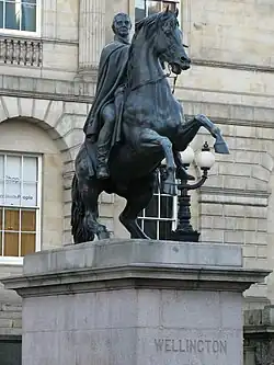 - a bronze equestrian statue of the Duke of Wellington outside Register House in Edinburgh, 1852. When it was unveiled the press dubbed the statue "the Iron Duke in bronze by Steell".