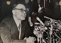 ![]() Downey giving a press conference in 1973 | |