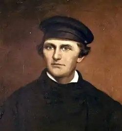 After John Brown's 1859 trial and sentence, Smith was appointed to oversee the execution, and along with almost all of the Virginia Militia, the Corps of Cadets was assigned to provide security in Charles Town, where Brown was to be hanged.[18] Preston participated in his role as quartermaster, and observed the execution. He wrote a letter to his wife in which he described in detail the events surrounding the execution. This letter was published in several newspapers, and provided an important firsthand account of the event.[19] According to contemporary accounts, it was Preston who broke the silence that followed Brown's death, declaring to the crowd "So perish all such enemies of Virginia! All such enemies of the Union! All such enemies of the human race!"[20][21]