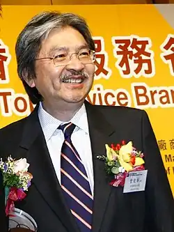 He was Assistant Director-General of Trade from 1992 to 1995 and Private Secretary to the Governor, Chris Patten, from March 1995 to June 1997.[4] In July 1997, Tsang was appointed Director-General of the Hong Kong Economic and Trade Office in London. In 1999 he returned from London and assumed the office of Commissioner of Customs and Excise, appointed by then Chief Executive Tung Chee-hwa.[4] Tsang was Secretary for Planning and Lands from 2001 to 2002.[7] After the Principal Officials Accountability System was introduced in July 2002, his title was changed to the Permanent Secretary for Housing, Planning and Lands (Planning and Lands), Permanent Secretary having become the highest ranking in the Hong Kong Civil Service.