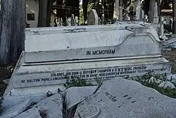 In later life, Bateman-Champain suffered from hay fever, asthma, and eventually bronchitis, and in January 1887 he was persuaded to leave England for the Mediterranean for the sake of his health. After spending three weeks at Cannes, France, he went to Sanremo, Italy, where he died on 1 February 1887.[10] The Shah of Persia sent a telegram to his family expressing his great regret for the loss of Bateman-Champain, "qui a laissé tant de souvenirs ineffaçables en Perse" ("who has left so many indelible memories in Persia"), a very unusual departure from the rigid etiquette of the court of Teheran.[10]