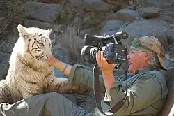 ![]() Varty filming with a tigress in 2009 | |