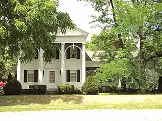 Built in 1863 in the style of Greek Revival architecture, the structure is a wood framed, two-story house with a portico, pediment, and rounded latticework linking the four hexagonal columns of the portico. A 1½-story addition was built along the entire right side of the house in 1880, extending the length of the structure and adding a large room. Since then, the structure has remained largely intact, except for an arcade and porch added to the back in 1974.[2] The house is clad with Flush-board siding, and has a center door with molded enframement. A recessed porch on the ell contains a secondary entrance door.[3]