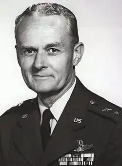 White's subsequent career was with nuclear weapons. He was the deputy chief of the Armed Forces Special Weapons Project and its successor, the Defense Atomic Support Agency, from August 1957 to August 1960.[2] As such, he was an observer at the British Operation Grapple nuclear tests in the Pacific.[5][6] From August 1960 to July 1962 he was the assistant for special weapons and commander of the 3079th Aviation Depot Wing of the Air Force Logistics Command, which was located at Wright-Patterson Air Force Base in Ohio. He then became the commander of the Air Force Special Weapons Center at Kirtland Air Force Base in New Mexico.[2] For this service he was awarded the Air Force Distinguished Service Medal.[1] He retired from the USAF on 1 April 1966.[2]