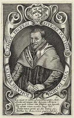 The son of Peter White, vicar of St. Neots, Huntingdonshire, and of the neighbouring parish of Eaton Socon in Bedfordshire, he was born at Eaton Socon; Francis White was his brother. White was educated at St. Neots grammar school. He was admitted a sizar of Gonville and Caius College, Cambridge, on 15 February 1586, was scholar from Lady-day 1588 to Michaelmas 1592, and graduated B.A. in 1590, M.A. in 1593, and D.D. in 1612.[1][2]