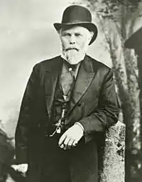 John Whiteaker was born in Dearborn County in the southeast corner of Indiana to farmers on May 4, 1820.[1] His parents were John and Nancy (née Smales), and he had four siblings.[1] Growing up he only received six months of formal schooling and as a result, was almost entirely self-educated. Before moving West, he had performed odd jobs, carpentry, and volunteered for military service during the Mexican War, although his unit was never called into battle.