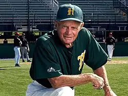 John W. Winkin Jr. (July 24, 1919 – July 19, 2014) was an American baseball coach, scout, broadcaster, journalist and collegiate athletics administrator. Winkin led the University of Maine Black Bears baseball team to six College World Series berths in an 11-year span. In 2007, at age 87, he was the oldest active head coach in any collegiate sport at any NCAA level. In all, 92 of his former players wound up signing professional baseball contracts.[1] Elected to 11 different halls of fame, including the National College Baseball Hall of Fame in 2013, he finished his college baseball coaching career in 2008 with 1,043 total wins, which ranks 52nd all-time among NCAA head coaches. He died in 2014.