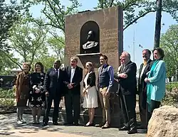 On May 15, 2018, on the anniversary of Ambrose's death, the City held an official statue unveiling and rededication ceremony, which was attended by about 100 people, half of whom were descendants of Ambrose, traveling from eleven different states and Ireland. The newly restored monument has been relocated from its original location of behind the old Aquarium to the edge of State Street, between Pearl and Water Streets, at The Battery.