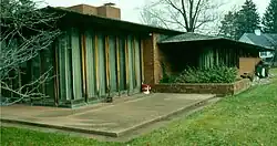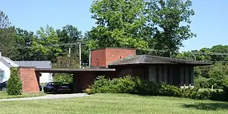 The John D. Haynes House is a house in Fort Wayne, Indiana, designed by Frank Lloyd Wright.[3] The house is a small and modest Usonian design in glass, red tidewater cypress, and Chicago Common Brick on a red concrete slab.[4]
