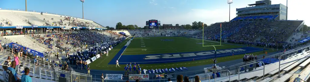 Johnny "Red" Floyd Stadium is a stadium in Murfreesboro, Tennessee, United States. It is primarily used for American football, and is the home field of the Middle Tennessee State University Blue Raiders. It previously served as the home stadium for Riverdale and Oakland high schools, for a long period when those schools did not have stadiums. It later was the home stadium for Siegel High School for a short period, when construction for a stadium was delayed. The stadium is named for Middle Tennessee State University football coach Johnny Floyd.