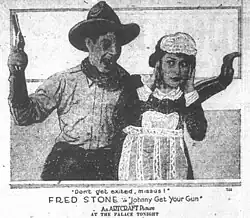 Johnny Get Your Gun is a 1919 American comedy silent film directed by Donald Crisp and written by Edmund Lawrence Burke and Gardner Hunting. The film stars Fred Stone, Mary Anderson, Casson Ferguson, James Cruze, Sylvia Ashton, Nina Byron and Mayme Kelso. The film was released on March 16, 1919, by Paramount Pictures.[1][2]