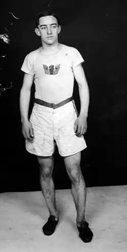 John Joseph Hayes (April 10, 1886 – August 25, 1965) was an American athlete, a member of the Irish American Athletic Club, and winner of the marathon race at the 1908 Summer Olympics. Hayes' Olympic victory contributed to the early growth of long-distance running and marathoning in the United States.[3][4] He was also the first man to win a marathon at the now official standard distance of 26 miles 385 yards when Olympic officials lengthened the distance to put the finish line in front of the Royal Box (the 1896 and 1904 Olympic marathons had been less than 25 miles long).[5]