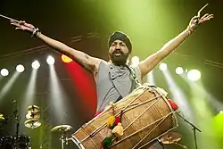 He performed at a number of World of Music, Arts and Dance (WOMAD) festivals around the world.[5] While performing at ceremonial weddings, Kalsi was encouraged to teach his techniques to others.[6] He became the first dhol player to perform live with DJs, which appealed to younger audiences.