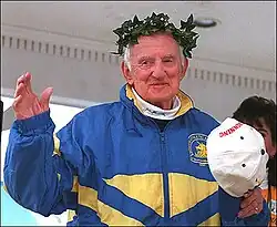 John Adelbert Kelley (September 6, 1907 – October 6, 2004) was an American long-distance runner who twice represented his native country at the Summer Olympics, in 1936 and 1948, and competed in the Boston Marathon over 50 times, winning in 1935 and 1945. He was often dubbed "Kelley the Elder" to avoid confusion with John J. Kelley (1930–2011; "Kelley the Younger"), winner of the 1957 Boston Marathon; the two men were not related.[1][2]