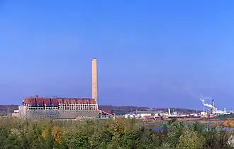 Construction of the fossil plant began in 1949.[1] The fossil plant started commercial operations at Unit 1 on October 27, 1951. By August 1959, all ten units were operating.[2] Its ten units had a combined operating capacity of 1.5-gigawatts (1,500 MW) with Units 1–4 providing electricity to the nearby Chemours plant.[3] In a 2011 agreement with the Environmental Protection Agency (EPA) to resolve lingering violation complaints in failure to comply with the Clean Air Act, the TVA announced they would shut down the coal units at Johnsonville by 2018.[4] Units 5–10 were idled at Johnsonville in 2012 and were shut down on December 31, 2015.[1][5] Units 1–4 were shut down on December 31, 2017.[1][6] The plant was destroyed via a controlled implosion on July 31, 2021. [1]