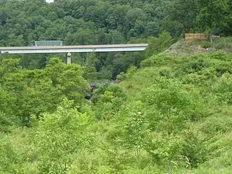 Immediately downstream of Johnstown, the Conemaugh River is hemmed in by steep mountainsides for about 10 miles (16 km). A roadside plaque alongside Pennsylvania Route 56, which follows this river, proclaims that this stretch of valley is the deepest river gorge in North America east of the Rocky Mountains.