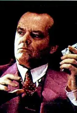Jack Napier, also known as the Joker, is a fictional character introduced in the 1989 superhero film Batman, directed by Tim Burton. Primarily portrayed by Jack Nicholson, the character was based on the DC Comics supervillain the Joker.[1] His name is a play on the word Jackanapes, as well as a reference to the names Jack Nicholson and Alan Napier, the latter having portrayed Alfred Pennyworth in the 1960s Batman TV series and having died the previous year.[2][3] This depiction is notable for being one of the first adaptations of the character to have a distinct first and last name, as well as one of the few instances which show his origins. This iteration of the Joker is a psychopathic gangster who serves as the right-hand man of Gotham City crime boss Carl Grissom until he is disfigured following a confrontation with the vigilante Batman; his disfigurement drives him insane, and he becomes a costumed criminal mastermind obsessed with "out-doing" the Dark Knight, who he believes is getting too much press, in addition to seeking revenge against him.