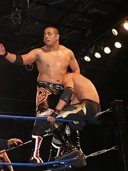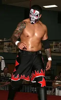 ![]() Joker wearing his iconic facepaint before a 2012 match in JAPW | |