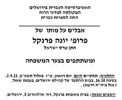 - ^ a b Ettinger, Ya'ir (September 3, 2012). "Professor Yonah Frankel, laureate of the Israel Prize in Talmud, passed away". Haaretz.