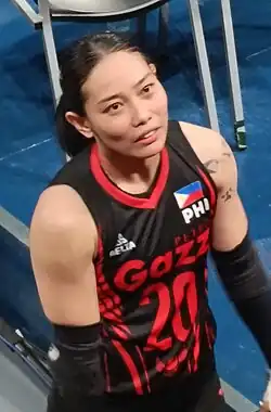 Sabete then moved to the Premier Volleyball League (PVL) in 2019 to join the Petro Gazz Angels where she became a long-time player.[8] The team won its first ever title in the 2019 Reinforced Conference.[9] The COVID-19 pandemic disrupted league activity.[10]