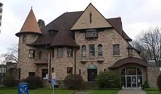 Jonas M. Kilmer House, also known as the Kilmer Mansion, is a historic home located at Binghamton in Broome County, New York. It was constructed in 1898 and is a large 3+1⁄2-story residence using an eclectic Victorian-era vocabulary. It is primarily constructed of stone and features irregular form and massing. The building is characterized by a variety of different sized gables and turrets, all surmounted by a high hipped roof clad in asbestos shingles. Jonas M. Kilmer (1843–1912) was the father of Willis Sharpe Kilmer (1869–1940).[2]