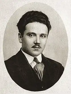 In 1910, Vailokaitis started working as a bookkeeper at Žagrė (sokha), an agricultural cooperative in Marijampolė.[4] Established by Catholic priests and more educated farmers, it helped farmers to acquire cheaper fertilizers, seed, agricultural equipment as well as to sell their products at higher prices. It also educated farmers and planned to open an agricultural school in Gižai Manor.[5] Meetings of cooperative members were often chaired by Vailokaitis' brother Juozas while Jonas was secretary.[6] Vailokaitis was also involved in cultural life in Marijampolė. He was a member of an amateur theater troupe organized by Albinas Iešmanta. It staged the first public performance in June 1909.[7]