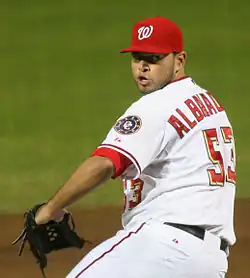 On May 3, 2007, Albaladejo signed a minor league contract with the Washington Nationals.[2] He played most of the season for the Class-AA Harrisburg Senators, compiling a 4.17 earned run average in 21 appearances.[3] He moved up to the Class-AAA Columbus Clippers and finished the season extremely well, posting an ERA of 0.78 in 14 appearances. When rosters expanded in September, the Nationals, then leading the league in innings pitched by relievers, brought him up.[4]