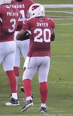 On March 12, 2014, Dwyer signed a one-year contract with the Arizona Cardinals.[11] On September 17, Dwyer was arrested for domestic violence, and as a result the Cardinals deactivated him from all team activities, placing him on the non-football injury list.[12]