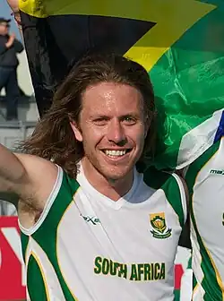 He has played for South African Men's hockey team 115 times and the South Africa Indoor Hockey team 3 times.[2] Participated in numerous international top-level tournaments including the London 2012 Olympic Games, New Delhi World Cup in 2010, Den Haag World Cup in 2014 and Commonwealth Games in Glasgow in 2014. Part of the winning SA team at the African Championship FIH International tournaments for the years 2009, 2011, 2013 and 2015.