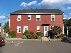The Jonathan Root House is located north of the village center of Southington, on the west side of North Main Street at its junction with Mill Street. It is a 2+1⁄2-story wood-frame structure, five bays wide, with a large central chimney and a center entrance. The entrance is flanked by sidelight windows and topped by a gabled entablature. It originally had a more steeply sloping rear roof, giving it a saltbox profile, but that was raised in the 20th century to provide for a larger second story. Well-preserved interior elements include a period builtin cupboard.[2]