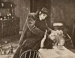 Moreover Robert Wiene's 1920 film The Cabinet of Dr. Caligari significantly influenced Jacobs's writing of The Yellow "M", particularly in terms of its dreamlike and nightmarish atmosphere, and the portrayal of the master-slave relationship between the film's protagonists.[10] In the film, Dr. Caligari employs hypnosis on Cesare to induce him to perpetrate criminal acts, thereby enabling the doctor to exact retribution on society. This is analogous to how Dr. Septimus manipulates Olrik in The Yellow "M."[9] Additionally, the character of Jonathan Septimus evokes that of Doctor Mabuse, as created by Luxembourgish writer Norbert Jacques and brought to the screen by Fritz Lang in the 1922 film Dr. Mabuse, The Gambler. Like Mabuse, Septimus represents a threat to the established moral and political order of his country.[10]