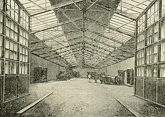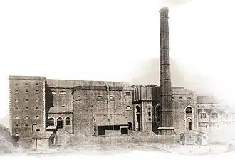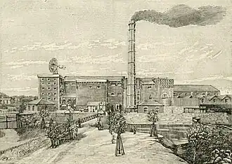 Barnard described the facility as "the most modern of the distilleries in Dublin",[1] with mechanisms including "a 50hp Leffel Turbine for electricity, driven either by a big wheel in the adjoining River Tolka or by one of the plant's steam engines".[4] Movement of water was facilitated by a double acting plunger pump supplied by Pearn & Co of Manchester, UK which was acknowledged as the finest specimen of hydraulic machinery in any Distillery in Dublin, being capable of raising 1000 gallons of water per minute.[1][4][10] The primary power source for the distillery was via steam engine occupying an engine-house located in front of the Still Hall. The engine was manufactured and supplied by the iron founders and engineers, Messrs. Victor Coates & Co., of the Lagan Foundry and Price Dock Works, Belfast, which could generate 100 horse power.[2] A secondary source of power was also incorporated into the distillery design in the form of a Leffel Turbine Wheel, manufactured by the James Leffel Co., New Haven, Connecticut, USA, which was positioned in the middle of the River Tolka which at full speed could produce up to 50 horsepower.