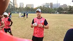Jonathan Neil "Jonty" Rhodes (born 27 July 1969) is a South African professional cricket coach, commentator and former Test and One Day International cricketer.[1] He is regarded as one of the greatest fielders of all time and was the first South African cricketer to take 100 ODI catches. He played for the South African cricket team between 1992 and 2003.[2] He is the fielding coach of the Lucknow Super Giants[3] in the Indian Premier League. He is the fielding coach of Durban's Super Giants as well as the consultant fielding coach of the Sri Lanka national cricket team. Rhodes was a member of the South Africa cricket team that won the 1998 ICC KnockOut Trophy, the first ICC trophy the country has won.