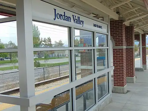 Jordan Valley station is a light rail station in West Jordan, Utah, United States, served by the Red Line of the Utah Transit Authority's (UTA) TRAX light rail system. The Red Line provides service from the University of Utah to the Daybreak community of South Jordan.