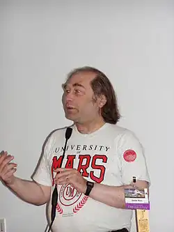 ![]() Dr. Jordin Kare speaking at Worldcon 2005 in Glasgow, UK | |