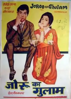 Joroo Ka Ghulam (Wife's Slave) is a 1972 Hindi-language comedy film. Directed by A. Bhimsingh, it stars Rajesh Khanna, Nanda, Om Prakash, Ramesh Deo and Jayshree T. The music is by Kalyanji Anandji. The movie was remade in Kannada as Anukoolakkobba Ganda. The duo of Nanda and Khanna had worked in the thriller The Train and the suspense drama Ittefaq (1969). This was the pair's third film and it was hit at the box office.[1]