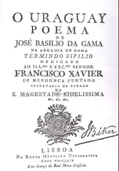 José Basílio da Gama (April 10, 1740 – July 31, 1795) was a colonial Brazilian poet and member of the Society of Jesus, famous for the epic poem O Uraguai. He wrote under the pen name Termindo Sipílio.[1]
