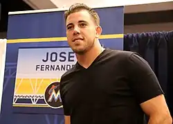 José Delfín Fernández Gómez (July 31, 1992 – September 25, 2016) was a Cuban-born American professional baseball right-handed pitcher who played four seasons in Major League Baseball (MLB). He was a member of the Miami Marlins from 2013 until his death in 2016. He stood 6 feet 3 inches (1.91 m) tall and weighed 243 pounds (110 kg) during his playing career. He was affectionately known as "Niño" to his teammates and fans due to the youthful exuberance with which he played the game.[1][2]