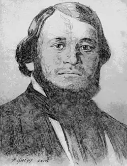 The Historical Society of New Mexico was initiated on December 15, 1859. A committee of five was appointed for the purpose of framing a Constitution and By Laws for the intended society. The committee members were Charles P. Clever, United States Marshal in Santa Fe; Facundo Pino, the brother of Nicolas Pino; W.J. Howard; José Guadalupe Gallegos; and Merrill Ashurst, Clever's sometime law partner. They were to report back with their recommendations a week later. On December 22 the report was read and adopted as amended. However, after protracted debates and on several articles, a new committee was appointed to reframe the Constitution. The second committee consisted of Col. John B. Grayson, Major J. L. Donaldson, Hon. K. Benedict, Dr. W. J. Sloan and C. P. Clever Esq. Clever was the only member from the previous committee that was retained. The new committee submitted its report December 26, 1859, endeavoring to "form an instrument, as plain, simple and comprehensible as possible, and in which every member of the committee concurs. At the same time, it acknowledges its indebtedness to the labors of the previous Committee, several of whose ideas it has adopted. ...Although the subject of the By Laws was not referred to the Committee, it has drawn up a number, to facilitate the organization of the Society which are herewith submitted and unanimously recommended." The report was adopted and the society now had a constitution.[12] It remained for the society to legally incorporate within the state, which it did with the help of Gallegos. The Act to Incorporate the Historical Society of New Mexico[13] was passed February 2, 1860, and signed by José G. Gallegos as Territorial Legislature Council President. In the Fourth Regular Meeting, April 30, 1860 J. G. Gallegos was appointed to Section lst—History, along with on. K. Benedict, Hon. S. M. Baird, Donaciano Vigil, Bishop Lamy, Serafin Ramirez, Charles P. Clever, A. De Marle and Major J. L. Donaldson. Other members were appointed to sections Geography, Indian Races, Geology and Mineralogy, Antiquities and Collections, Natural History, Agriculture, Statistics, Botany, Biography, Meteorology and Climatology.[12] The Society suspended it activities in 1863 due to the Civil War.