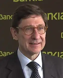 On 9 May 2012, he became the president of Bankia, the fourth largest bank of Spain.[6] On 25 May 2012, Bankia asked for €19 billion from the FROB, the Spanish bailout fund for banks.[7] Bankia also revised its earnings statement for 2011, stating that instead of a profit of €309 million, it had in fact lost €4.3 billion before taxes.[8] A number of limitations were imposed as a result of having received state aid. Shareholders had to share part of the burden of the capital injection, the balance sheet had to be reduced, dividends were restricted until 2014, and both the branch network (-39%) and workforce (-28%) had to be reduced.[9] At the end of 2015, Bankia had fulfilled two years ahead of schedule all the targets set by the European Commission in the BFA-Bankia Group Restructuring Plan. The bank also reported the best efficiency, solvency and profitability among the six largest Spanish banks.[10]