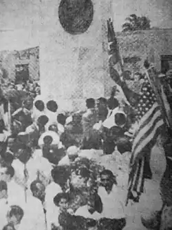 Cuban president Carlos Prío Socarrás, his cabinet, diplomats, military commanders, journalist, school children, teachers and other guests received Palma's urn at the Rancho Boyeros military airport. Thousand of children with both Guatemala and Cuba flags walked alongside the urn until it was placed in the Hall of the Lost Steps and the government declared national mourning on 17 and 18 April. Palma was awarded the titles of "Bayamo's best son" and "Major general of the Cuban Army".[3]