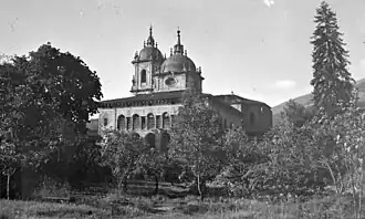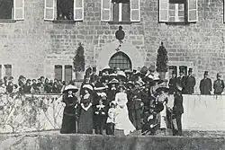 Following his early homeschooling, some time in the late 1850s José María entered the Jesuit Tivoli college[30] in Bordeaux.[31] He spend there at least few years; due to unspecified family reasons he moved to an unidentified school in Pamplona,[32] where in the mid-1860s he obtained the baccalaureat.[33] Some sources claim he attended also Real Seminario de Nobles de Vergara[34] and an institution in Madrid.[35] José María married[36] a Valenciana,[37] María Vives de Cañamas (1853-1910),[38] daughter of 18. Conde de Almenara (1814–1883).[39] The couple had 7 children, born between 1879 and 1894;[40] none of them became a public figure. The heir and the 6th marqués, Ignacio de Orbe y Vives Cañamas,[41] was moderately[42] active in the Carlist realm[43] and grew to member of the Vascongadas party executive in the 1960s.[44] Perhaps the best known of José María's descendants is his great-grandson and the 7th marqués,[45] José María de Orbe y Klingenberg, a filmmaker;[46] most of his movies, usually set in the Catalan ambience, do not relate to ancestral records; the last one, however, is partially shot in the Astigarraga palace and contains veiled references to the family history.[47]