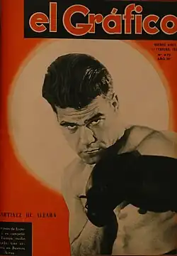 That same year, after 18 consecutive victories in Valencia, he was named contender for the national title after beating the Cantabrian Amador Rodríguez, on a program organized by the Valencian Press Association, on October 12, 1929.[3] In March 1930, the "Tigre de Alfara" (nickname created by "Alarcón", promoter and boxing columnist for El Mercantil Valenciano news paper), won the Spanish light heavyweight championship against Basque boxer Antonio Gaviola.[4] He was national champion at that weight from 1930 to 1937.[5]