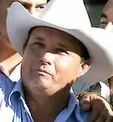 The indictment alleges how Treviño Morales, his brothers, and his close associates arranged a network where they quietly purchased race horses with drug proceeds at auctions, to then disguise the source of the funds used by them to cover up the involvement of Los Zetas.[3] When carrying out the transactions, they would often pay in large sums of cash, or use fake names, to cover up their identities and avoid being caught.[3] Since 2008, Treviño Morales' operation generated millions of dollars in transactions from the states of California, New Mexico, Texas, and Oklahoma; the New York Times first reported on the raids and the operation's alleged connection with the Zetas, citing several anonymous sources and investigations.[5] The operation, Tremor Enterprises LLC, started small but quickly generated huge profits and worked in plain sight. In fact, some of the horses used for the races had references to the drug world, like Coronita Cartel and Number One Cartel, to name a few.[3][6] Over time, the horses of the operation were placed among the best in their industry. One of them named Mr. Piloto won $1 million at a race in Ruidoso Downs Race Track on Labor Day in 2010, going off the odds of 22–1.[6] Another horse, the Tempting Dash, won the Dash for Cash race in Grand Prairie, Texas.[6] Treviño's success in quarter-horse racing allowed him to hire top trainers and jockeys.[7] His successful record allowed him to gain social status and get a popular magazine to cover his daughter's wedding, where many well-known figures in the horse racing industry attended.[8]