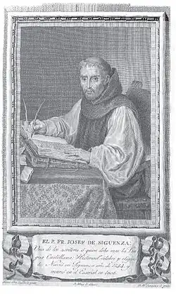 José de Sigüenza (Sigüenza, 1544 - El Escorial, 22 May 1606) was a monk of the Order of Saint Jerome, historian, poet, and theologian. He was the prior of the monastery of El Escorial, where he served as both librarian and historian.
