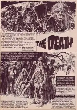 Ortiz joined Warren Publishing in 1974 due to his connections with the Valencia studio of Selecciones Ilustradas. He would remain with Warren until 1983 and drew more stories for that company (approximately 120) than any other artist.[2] His work included the series Apocalypse, Night of the Jackass and Coffin in Eerie, as well as Pantha in Vampirella and numerous stand alone stories. Ortiz would also draw Vampirella herself in issues 35 and 36 that title. He won the award for 'Best All Around Artist' at Warren in 1974.