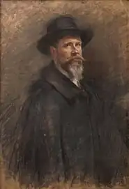 From 1886 to 1891, he worked as a portrait painter in Munich. He then settled permanently in Innsbruck, but travelled extensively throughout Northern Europe, to execute works on commission; portraying numerous members of the German, Danish, Dutch and Russian nobilities. In recognition of these achievements he was named a Professor by the Grand Duchy of Mecklenburg-Schwerin.[1]