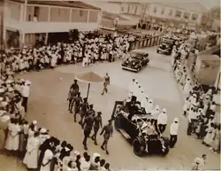 He returned to the States to become dean of the liberal arts college of Marquette University (1910–1921) and then for two years professor of philosophy at St. Louis University. He had been requesting reassignment to the Jesuit mission and it came in the form of his appointment, at age 66, as Vicar Apostolic for British Honduras. He was consecrated bishop by Archbishop Glennon in St. Louis, Missouri, on March 19, 1924.[2] He would preside from Holy Redeemer, the mother church in Belize with its cathedral dating back to 1858. His episcopacy would be marked by construction projects like that of Holy Redeemer Hall, the largest in Belize at the time,[3] as well as by reconstruction after the 1931 Belize hurricane, a category 4 that killed approximately 2500 people.