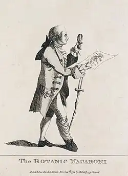 Banks left Oxford for Chelsea in December 1763. He continued to attend the university until 1764, but left that year without taking a degree.[8] His father had died in 1761, so when Banks reached the age of 21, he inherited the large estate of Revesby Abbey, in Lincolnshire, becoming the local squire and magistrate, and dividing his time between Lincolnshire and London. From his mother's house in Chelsea, he kept up his interest in science by attending the Chelsea Physic Garden of the Worshipful Society of Apothecaries and the British Museum, where he met the Swedish naturalist Daniel Solander. He began to make friends among the scientific men of his day and to correspond with Carl Linnaeus, whom he came to know through Solander. As Banks's influence increased, he became an adviser to King George III and urged the monarch to support voyages of discovery to new lands, hoping to indulge his own interest in botany. He became a Freemason sometime before 1769.[9]